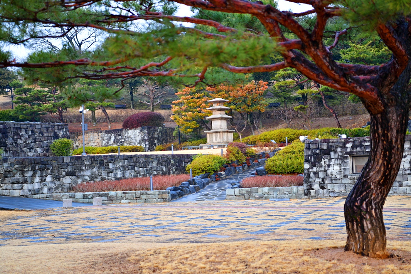 아침 비 맞은 진주성 박물관 마당이 봄이 오는 것을 이야기 해줍니다.