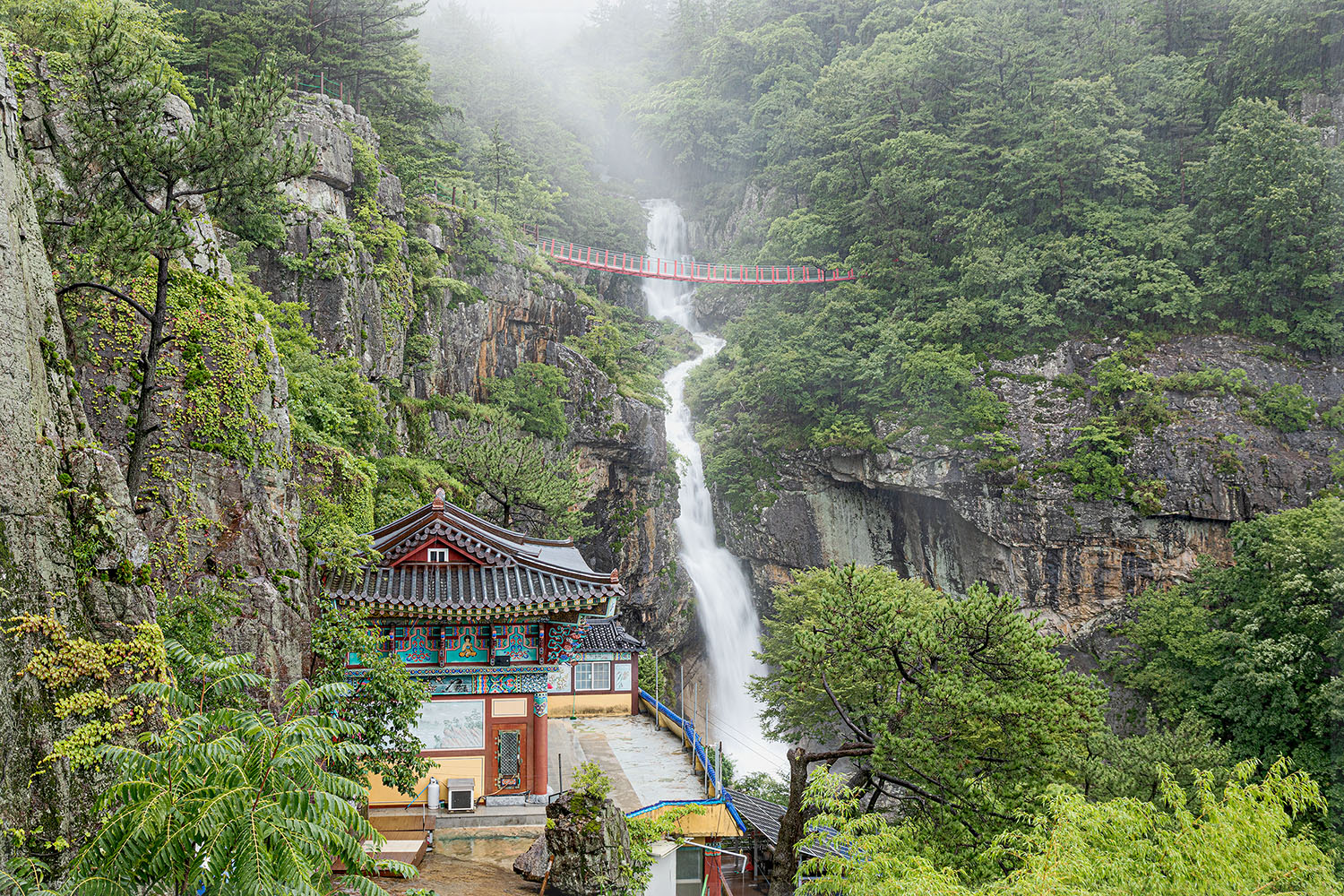 장마비로 수량이 풍부한 구절산 폭포암 절경입니다.