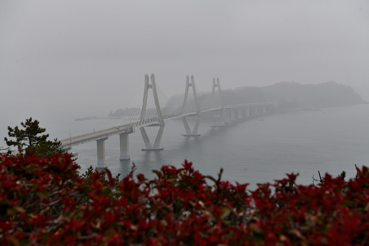 어제 비 내리는 남해안 바닷가를 찾으셨네요. 오랫만에 보는 거가대교 입니다.